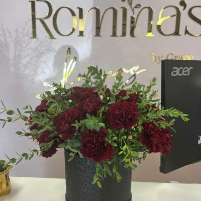 Price: $75.00 Elegant white rose arrangement in a black box | Romina Flowers Orange County Product Tags: Next-day Delivery