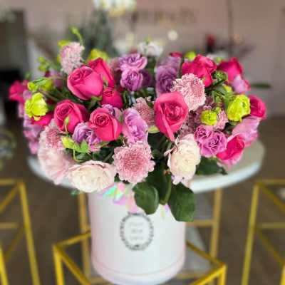 Price: $95.00 Hadassa Tulip Box – Pink Tulips & Green Foliage | Romantic Flower Arrangement OC Product Tags: Same-day Delivery